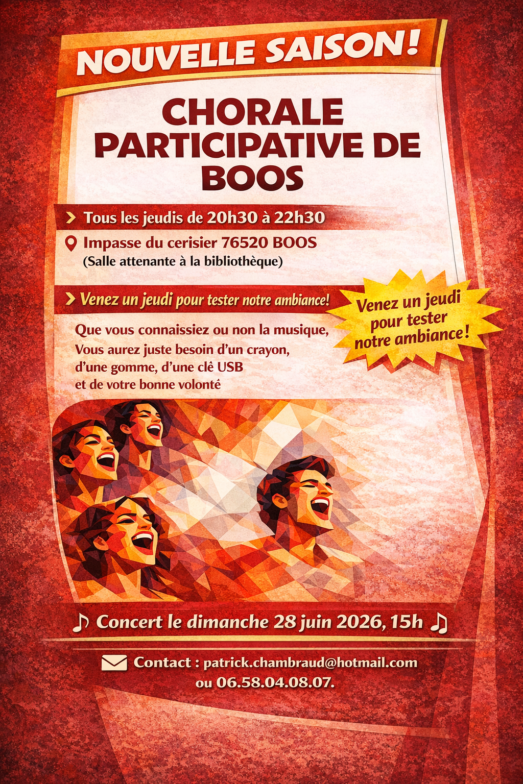Rejoignez la chorale participative de Boos